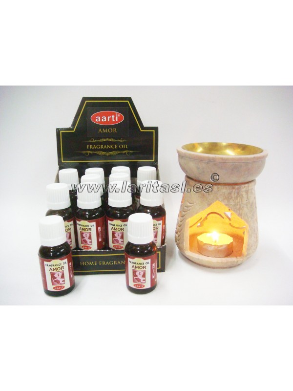 Mezcla especial de aromas. Aceites fabricados en India, presentados en caja expositora de 12 frascos. Cada frasco se presenta con gotero contiene 15ml de aceite.
