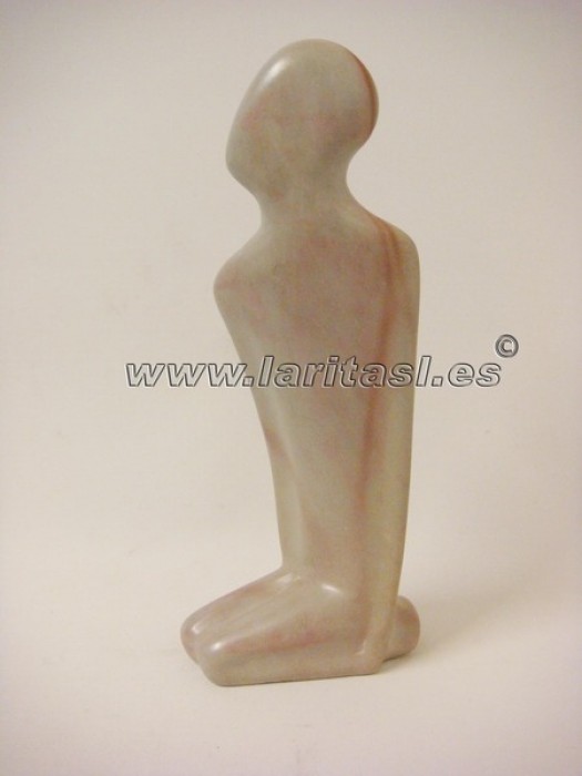 Figura en piedra jabón (esteatita) tallada artesanalmente, que representa a una persona sentada en el suelo.