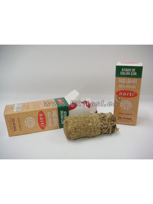 Atado de salvia (Salvia Officinalis) con recubrimiento de salvia. Mide entre 09 y 10 cm de largo y tiene un grosor de 3,5-4cm (medidas aproximadas)