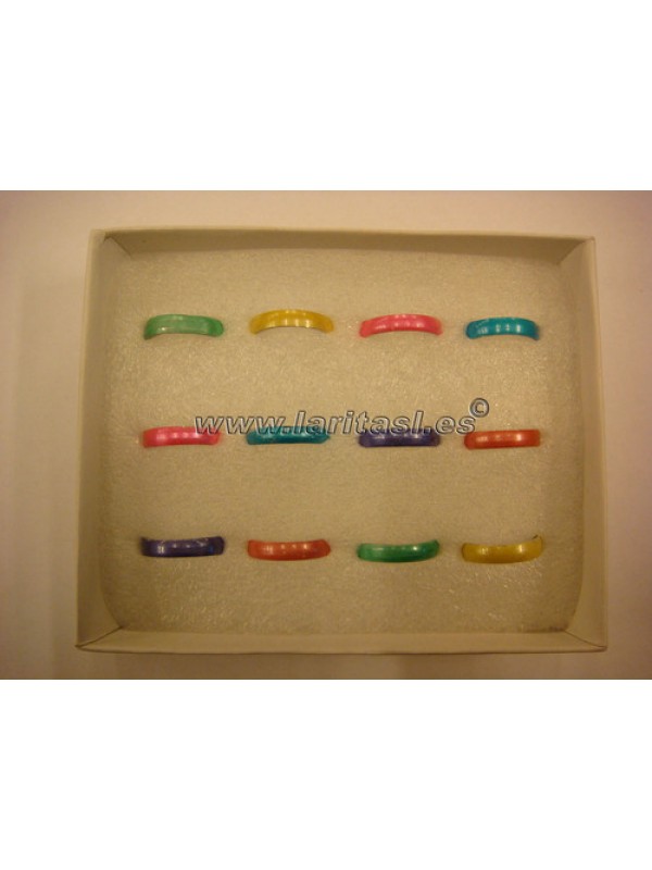 Anillos de aluminio, caja de 12 unidades con colores surtidos.