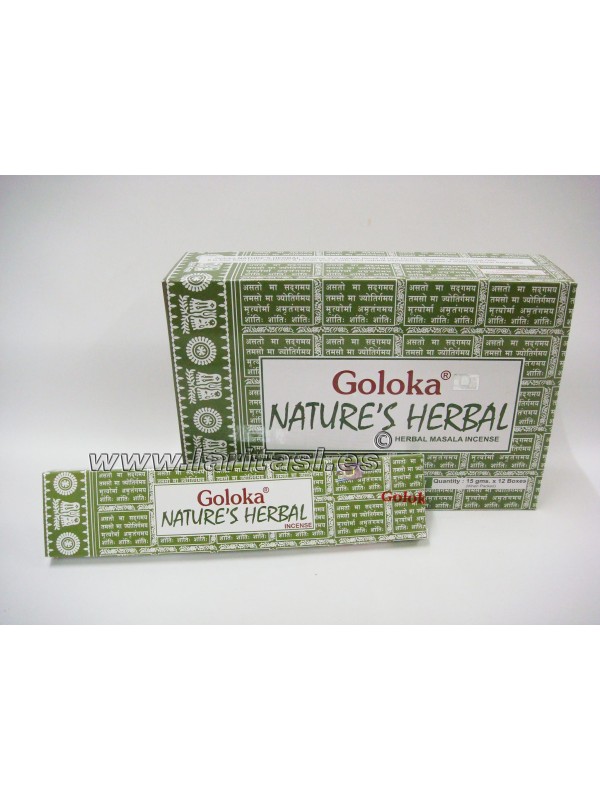 Incienso de la casa Goloka en calidad masala, aroma con mezcla especial de plantas y hierbas.