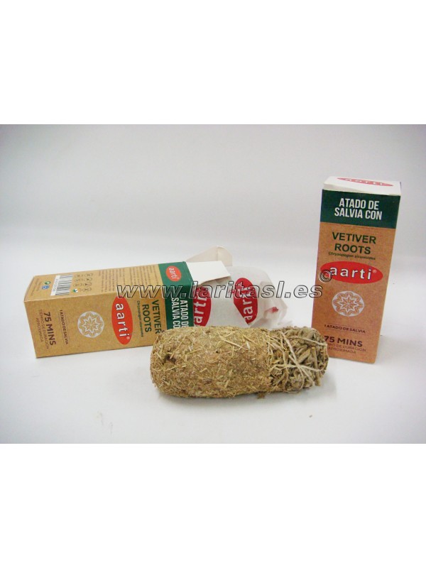 Atado de salvia (Salvia Officinalis) con Vetiver (Chrysopogon zizanioldes). Mide entre 09 y 10 cm de largo y tiene un grosor de 3,5-4cm (medidas aproximadas)